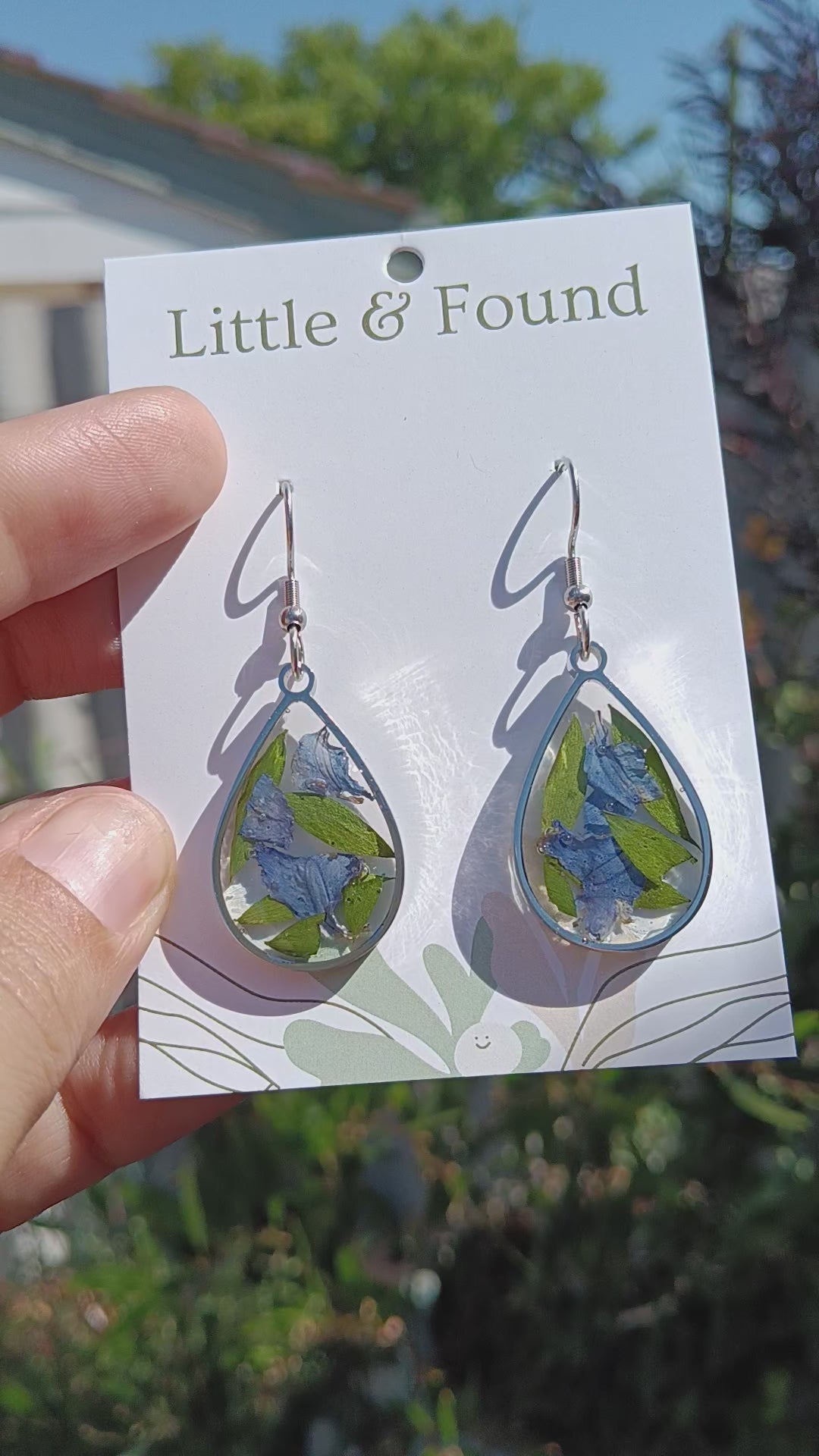 Hand picked, pressed, and set in UV resin, these earrings are all unique. All flowers are either from my own garden or from the Aussie native nursery I work at. They are lightweight in design and all have stainless steel hooks for sensitive skin.