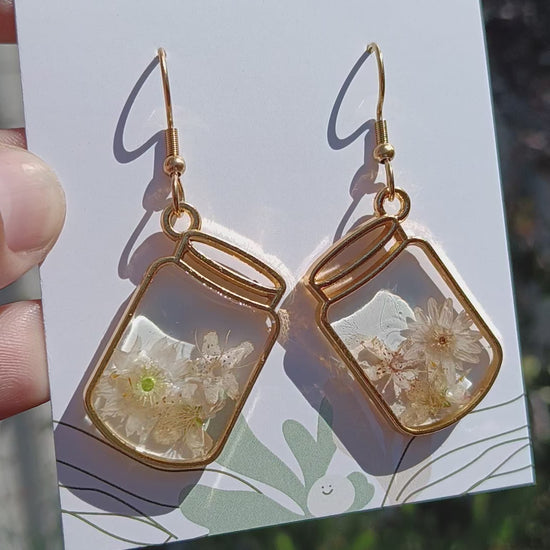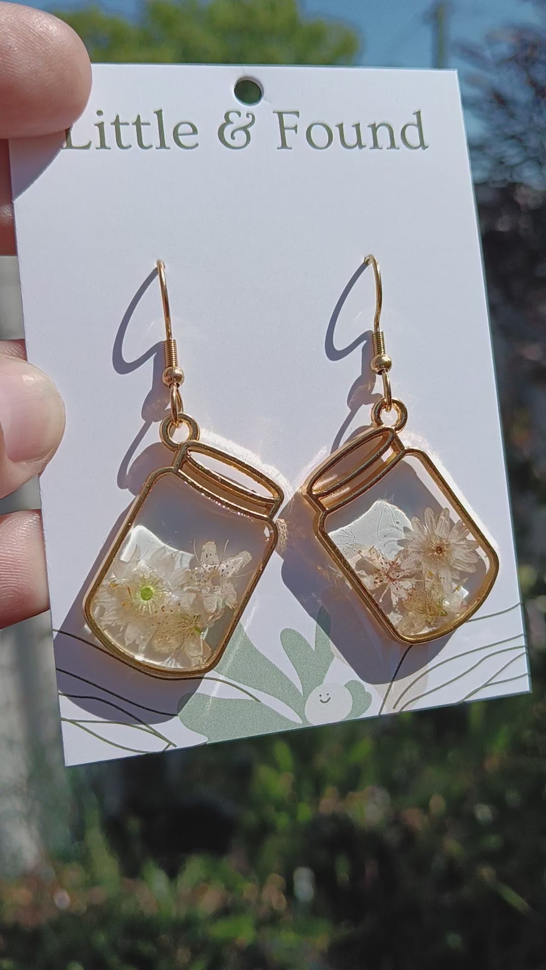 Hand picked, pressed, and set in UV resin, these earrings are all unique. All flowers are either from my own garden or from the Aussie native nursery I work at. They are lightweight in design and all have stainless steel hooks for sensitive skin.