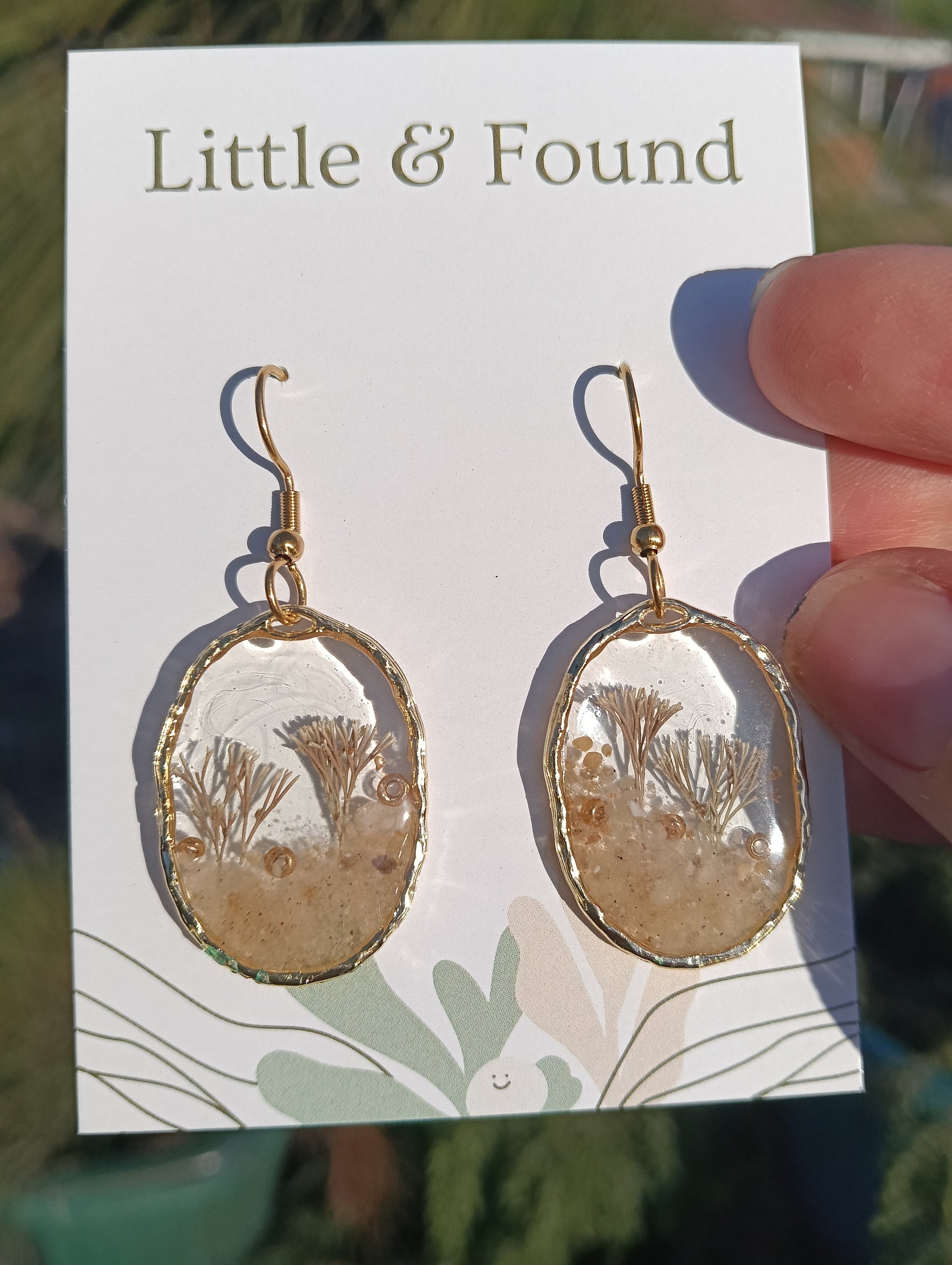 When storing these earrings, keep them away from direct sunlight or excess heat, the sun will discolour the resin and fade the flowers over time, while heat can warp the resin. Best placed in soft storage to avoid scratching the resin. Avoid too much contact with water, as well as perfume, lotion, hairspray etc. They can be cleaned with lightly damp cloth and mild soap.